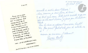 On joint 19 lettres à sa femme Micheline, condoléances après la mort de l’acteur : Simone Berriau, Micheline Boudet, René Clair, Christian Cormier-Delanoue, Jean-Pierre Dorian, Christiane Minazzoli, Mme Moncorgé-Gabin et sa fille Valérie, etc.