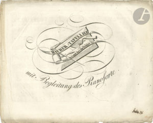 MUSIQUE MAÇONNIQUE. — Musique gravée, Maurer-Tafellied. Durch drei mal drei ihr Brüder &c. mit Begleitung des Pianoforte, [s.l.n.d.] ; bifeuillet oblong in-fol.