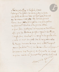 Lettres autographes signées (plusieurs adr. à Aug. Vacquerie) par P.J. de Béranger (à Odilon Barrot), Émile Deschamps, Amie Devienne, Jules Duflos, Dupin aîné, Alphonse Esquiros, Général Fleury, Jules Gérard, César et Frédéric d’Houdetot, Alphonse Karr, Paul Lacro , Pierre Lebrun, H. Lemonnier de Lafosse, Édouard Ourliac, Edgar Quinet, George Sand, H.D. Souaillard ; et un fac-similé de St Vincent de Paul.