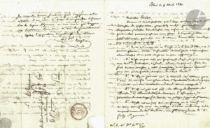 Très intéressante lettre, faisant une mise au point après un article paru dans Le Conservateur, qui pourrait le «faire soupçonner de laisser dans le besoin mes enfans et leur mère». Il rappelle qu’alors qu’il était en Corse et à l’île d’Elbe il a donné «seul à mes enfans délaissés tout petits, les soins les plus affectueux » ; que pendant la durée de son mariage avec la dlle Trébuchet il a été seul à subvenir aux frais de la maison. Lorsqu’il était à Madrid, il a obtenu pour l’aîné de ses fils une place à l’école des pages, puis une sous-lieutenance dans l’armée espagnole ; du champ de bataille de Cifuentes, il a obtenu l’entrée de ses deux fils cadets au Collège royal de San Antonio ; de retour en France, il a mis, à ses frais, ses enfants au collège, et a voulu qu’ils suivent les cours de l’Université ; à leur demande, il les a tirés de leur pensionnat pour étudier le droit, et il envoie régulièrement son fils aîné Abel les fonds destinés à l’entretien de ses frères et de leur mère. Il donne le détail des sommes dissipées par Sophie Trébuchet, à qui il reproche «d’avoir donné ses opinions politiques à ses enfans», qui interrompent leurs études pour «faire un journal qu’on dit ultra»…