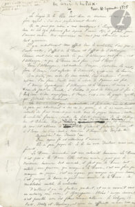 Victor HUGO. — Manuscrit signé avec ajouts et corrections autographes, Au Congrès de la Paix , Paris 10 septembre 1875 ; 2 pages in-fol. (fente au 1er feuillet avec pli consolidé au dos).