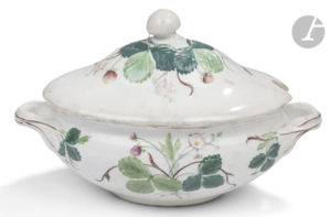 Saucière du service aux fraises [Creil & Montereau «Fraise»], utilisé par G. Sand à Nohant.