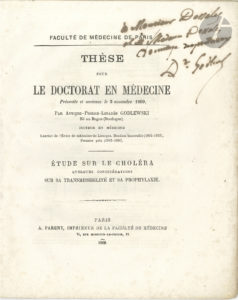 P. LABORIE, Dissertation sur la vaccine (1803, défauts). P. MOUYANE, Essai sur la pleurésie simple (1804). P.R. MONTMÉJA, Quelques considérations sur l’état aigu de l’inflammation du poumon (1823, envoi a.s.). P.-E. MAREILLAUD-Crespiat, Considérations sur le copahu et le cubèbe (1832). J.-L. du CLUZEAU de CLÉRANT, Considérations générales sur les flexions (1841). G.P. de MEYJOUNISSAS du REPAIRE, Du goitre exophtalmique (1867, envoi a.s.). A.P.L.GODLEWSKI, Étude sur le choléra… (1869, envoi a.s.).