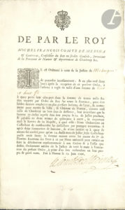 Ordres signés par des intendants de Namur : Comte de Medina (3, 1706), Comte de Lannoy de Clerva (1720 et 1725), Jamblinne de Neuville (1746), Prince de Gavre (1767).