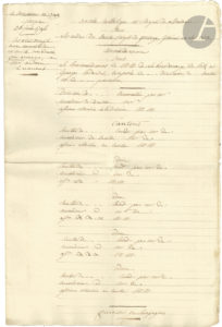 Le premier état concerne l’«Armée catholique et royale de Bretagne sous les ordres du Comte Joseph de Puisaye, Général en chef &a», à commencer en 1793 jusqu’au 24 juin 1796 ; une longue note à la fin précise : «On doit faire connoitre sur cet état dans l’observation le résumé et la date des affaires les plus marquantes qui ont eu lieu durant cette guerre ; les traits héroïques qui s’y sont passés, […] le nom des personnes qui, quoiqu’elles ne fussent pas sous les armes, ont cependant rendu les services les plus signalés ; enfin, tout ce qui est propre à illustrer l’histoire de la chouanerie si peu connue, dont la guerre commença en 1793 et finit en 1802 – la tentative de 1804 fut son dernier effort, effort qui ne sera pas non plus sans orgueil pour la Bretagne. – N°. On donnera également le nombre approximatif des morts et des blessés, et de ceux assassinés par les gendarmes, colonnes mobiles, commissions militaires, tribuna &a avec des notes sur la situation présente de leur famille»…