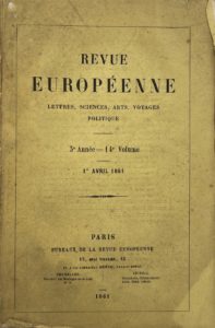 Paris, Revue Européenne, 1er avril 1861 ; fascicule in-8 broché, couverture jaune un peu salie et usée, chemise à dos de maroquin à long grain vert sombre, étui. Édition préoriginale. Le texte de Baudelaire occupe les pages 460 à 485.