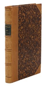 Amsterdam, à l’Enseigne du Coq, [Bruxelles, Poulet-Malassis], 1866 ; in-12, reliure de l’époque demi-veau blond à coins, filet doré, dos à nerfs orné de filets dorés et à froid, pièce verte, tête dorée, ébarbé. Édition originale sous ce titre, ornée d’un célèbre frontispice gravé à l’eau-forte par Félicien Rops, tiré sur Chine, accompagné de l’explication par Poulet-Malassis, imprimée en rouge sur un feuillet à part sur Chine.