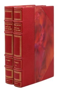 1877-1878 ; 2 vol. grand in-8 demi-maroquin vermillon à coins, filet à froid, dos à nerfs ornés de caissons de filets dorés, têtes dorées, couvertures saumon imprimées (Ch. Septier).Édition originale de ce réquisitoire très documenté contre le coup d’état de Napoléon III.