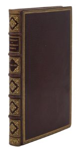 Paris, Lemerre, 1881  ; in-12, maroquin aubergine, filets dorés en encadrement sur les plats, dos à nerfs richement orné, dentelle intérieure, tranches dorées sur témoins, double couverture (Chambolle-Duru).Édition originale du premier livre d’Auguste Dorchain, qui lança sa carrière littéraire. Il n’a pas été tiré de grand papier. La couverture a fait l’objet d’une seconde émission pour mentionner le prix de l’Académie française reçu par Dorchain peu après la mise en vente. Les deux couvertures ont été reliées dans l’exemplaire, très beau par ailleurs.