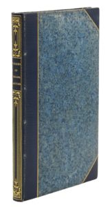 Paris, Mary et Mignoux, 1830  ; in-12 relié sur brochure, demi-maroquin à long grain bleu nuit, à coins, filet doré, dos lisse orné en long, couverture (Mercier, Sccr de Cuzin).Édition originale de toute rareté. C’est le premier recueil du jeune Gautier de dix-neuf ans, inconnu, encore très marqué par le romantisme alors que l’auteur deviendra l’un des moteurs du Parnasse. Bel exemplaire.