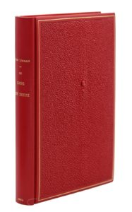 Paris, Lemerre, 1882  ; in-12, demi-basane rouge à la bradel, les plats façon galuchat à grains ronds, certains plus gros et plus saillants au centre, filet doré en encadrement, tête dorée, couverture, chemise à dos de basane rouge, étui (Patrice Goy).Édition originale du premier recueil de Jean Lorrain, dédié à Leconte de Lisle et publié à compte d’auteur. Le jeune poète s’est récemment installé à Paris et fréquente les Hydropathes et les Zutistes, mais il sera bientôt adopté par l’élite des Parnassiens, Heredia, Coppée et Leconte de Lisle.