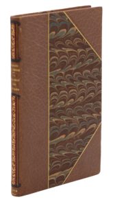 Paris, Charpentier, 1878  ; in-12, demi-maroquin taupe à coins, filet doré, dos lisse orné en long d’un listel rouge à guirlande dorée et de listels noirs recourbés aux extrémités, tête dorée (Noulhac).Édition originale.