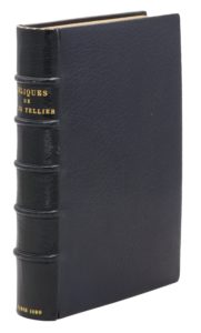 Évreux, Hérissey, 1890 ; in-12, maroquin janséniste bleu nuit, dos à nerfs, filets intérieurs droits et perlés, tranches dorées sur témoins, couverture, étui (René Aussourd).Édition originale posthume, hors commerce. Publiée par l’ami de Jules Tellier, Raymond de la Tailhède, elle fut tirée sur souscription à petit nombre sur vélin teinté. Portrait d’après un buste de Bourdelle gravé par Maurice Baud.