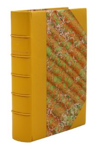 Paris, La Phalange, 1908 ; in-12, demi-maroquin citron à coins, dos à nerfs, tête dorée, couverture. Édition originale. Recueil d’un jeune poète de 22 ans, tué à l’ennemi en 1915, entièrement constitué de poèmes de deux quatrains relatifs à un voyage en Espagne.