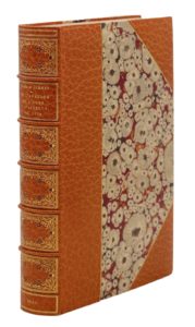 Paris, Mercure de France, 1898 ; in-12, demi-maroquin à gros grain fauve, à coins, filet doré, dos à nerfs très orné de motifs dorés et de fleurettes bordeaux, tête dorée, couverture (Tchekeroul).Édition en très grande partie originale (certains poèmes avaient paru dans les plaquettes précédentes), la première sous ce titre. L’ouvrage fonda la célébrité du reclus d’Orthez.