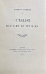 L’Eglise habillée de feuilles, poème. Paris, Mercure de France, 1906 ; in-12, vélin blanc à rabats, filet rouge sur les plats, dos lisse avec titre aux encres rouge et noire, tête rouge, couverture (Guérin). Édition originale. Un des 19 Hollande, seuls grands papiers. Talvart et Place, X, p. 71, 20.