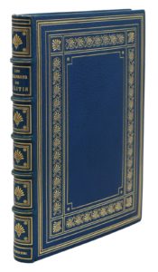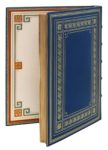 Paris, Librairie de l’Art Indépendant, 1895 (achevé d’imprimer du 3 décembre 1894) ; petit in-8 carré, maroquin bleu roi, filets dorés et cadre de roulette sur les plats, dos à nerfs orné de motifs d’éventail stylisés, doublures de vélin blanc bordées d’un listel brun et d’un autre bleu ciel à enroulement géométrique, pièces caramel ornées de fleurons dorés aux angles et à mi hauteur, gardes de moire caramel, tranches dorées sur témoins, chemise à dos de maroquin, étui (G. Maylander).Édition originale du recueil qui propulsa Louÿs dans le cercle fermé des poètes salués à la fois par la critique et par le public.