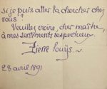 – une lettre de Pierre Louÿs à Paul Verlaine pour lui envoyer les épreuves d’un numéro de la Conque.