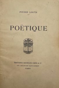 Paris, Georges Crès, 1917 ; plaquette in-12 carré, demi-maroquin bleu nuit à coins, dos lisse, couverture (Canape).Édition originale en librairie, en partie inédite. Un tiré-à-part avait été imprimé à quelques exemplaires à partir de l’article du Mercure de France de juin 1916.