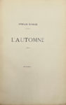 L’Automne. [Paris, Alcan-Lévy], 1886 ; plaquette in-8 bradel de demi-papier chagriné bleu. Édition originale du premier recueil d’un symboliste toulousain admis aux mardis de Mallarmé. Disparu à 24 ans, « il fut de ceux-là que la mort arrête en pleine conquête et qui tombent sans avoir connu la gloire. Son nom demeure en quelques mémoires, gravé religieusement. » (Emmanuel Delbousquet, L’Effort, avril 1897). Il n’a pas été tiré de grand papier. Talvart et Place, XV, p. 123, n° 1.