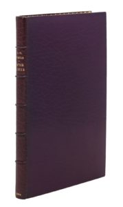 Paris, les amis de l’auteur, 1904 ; in-12 maroquin janséniste violet, dos à nerfs, dentelle intérieure, tranches dorées, couverture, étui (Semet et Plumelle).Édition originale rarissime de l’un des chefs-d’œuvre du Symbolisme, écrit entre 1879 et 1881, paru quinze ans plus tard sans le consentement de l’auteur. Jeune aixois « monté à Paris » pour se livrer tout entier à la Poésie, Germain Nouveau rencontre Mallarmé, Richepin, les Vivants et les Zutistes. Compagnon de voyage de Rimbaud (peut-être davantage), dépositaire des Illuminations, il se lie à Verlaine après le départ de Rimbaud. Frappé d’une crise mystique en 1891, il se fond durant les trente années qui lui restent à vivre dans le pèlerinage et la mendicité, suivant l’exemple de Saint Benoît Labre, qui avait été pourtant fort moqué du temps du Chat Noir. Il avait confié le manuscrit de Savoir aimer à son ami le comte de Larmandie, en lui enjoignant de ne le montrer à personne. Après la publication par Larmandie qui ne pouvait se résoudre à laisser le joyau enterré, Germain Nouveau, furieux, tâcha de détruire le plus d’exemplaires possible.