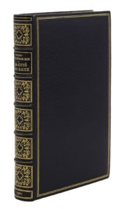 Paris, Mercure de France, 1902 ; in-12, maroquin bleu nuit, deux filets dorés en encadrement sur les plats, dos à nerfs très orné de motifs dorés, cadre intérieur de même maroquin avec dentelle dorée, doublures et gardes de moire citron, tranches dorées sur témoins, couverture, étui (E. & A. Maylander).Édition originale.