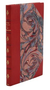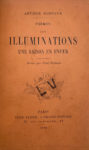 Paris, Léon Vanier, [1891] 1892 : in-12, demi-maroquin vermillon à coins, dos à nerfs orné de fleurons dorés, tête dorée, couverture saumon. Première édition collective des deux œuvres majeures de Rimbaud, parue quelques semaines après sa mort le 10 novembre 1891. « Son souvenir est un soleil qui flambe en moi et ne veut pas s’éteindre » disait Verlaine, qui a réimprimé en tête sa préface des Illuminations de 1886, moins deux phrases.