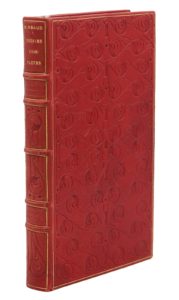 Paris, Léon Vanier, 1895 ; in-12, reliure (anglaise ?) postérieure, basane framboise, les plats décorés à froid de motifs d’arabesques à répétition, dos à nerfs orné dans le même goût, tête dorée. Deuxième édition collective, en partie originale, très améliorée par rapport à la première donnée par Rodolphe Darzens. Elle contient deux portraits de Rimbaud, une préface de 14 pages de Verlaine et 10 poèmes inédits.