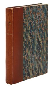 Paris, Sandoz et Fischbacher, 1877 ; in-12 demi-maroquin à long grain brun, à la bradel, ébarbé, couverture (Franz).Édition originale du premier livre de Rollinat, « tout nourrisson des Muses » (Charles Buet, Médaillons et Camées). Ce premier recueil, dédié à l’observation inquiète de la Nature laisse volontairement poindre les questions existentielles et l’angoisse qui éclateront dans les recueils suivants.
