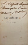 Envoi autographe signé au poète et critique littéraire Auguste Vacquerie. Il n’y a pas eu de grand papier. – Couverture et dos passés, rousseurs éparses.