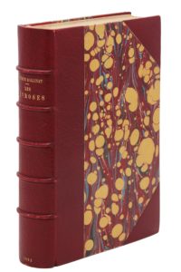 Paris, Charpentier, 1883 ; in-12, demi-maroquin à gros grain bordeaux, à coins, tête dorée, couverture (Semet et Plumelle).Édition originale du recueil le plus marquant de Rollinat, prototype du poète décadent, tout empli de doutes et d’angoisses, de figures macabres, de visions sataniques. « Baudelairien plus baudelairien que Baudelaire, [il] raffine encore sur les plus étranges sensations » (Stanislas de Guaïta, Préface à Roses mystiques).