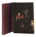 Paris, Mercure de France, 1893 ; grand in-12 carré, bradel demi-maroquin brun à coins, filet doré, dos orné en long d’une tige à feuilles dentelées, tête dorée, couverture verte imprimée en rouge (E. Sonleu).Édition originale. Petit employé lillois, le jeune Samain ne tarda pas à monter à Paris où il fréquenta d’abord les Hirsutes, les Hydropathes et le Chat Noir. Ce premier recueil connut un succès immédiat et sera imprimé à plusieurs dizaines de milliers d’exemplaires au cours des années qui suivirent.