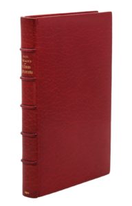 Paris, Alphonse Lemerre, 1867 ; in-12 de [3] ff., 163 pp., maroquin janséniste cerise, dos à nerfs, doublures de box cerise avec cadre formé de 7 filets à froid et un filet doré, tranches dorées sur témoins, couverture et dos, étui (Semet et Plumelle).Édition originale du premier recueil poétique de Verlaine annoncé dans le Journal de la Librairie le 17 novembre 1866. En le plaçant sous l’invocation de Saturne, il se référait à l’acception admise : sombre et mélancolique. Publié à compte d’auteur avec l’aide de sa cousine Elisa Dujardin, bien imprimé sur vélin blanc avec de petits ornements, il trouva un accueil plutôt favorable dans les milieux littéraires.