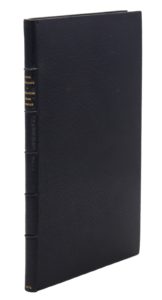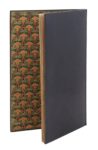 Sens, typographie de Maurice L’Hermitte, 1874 ; in-12 de 48 pp., [1] f., 1 f. bl., maroquin janséniste bleu nuit, dos à nerfs, doublures de maroquin vert entièrement recouvert de motifs de lotus à répétition rouges, vert clair, havane, gardes de soie vieux rose, tranches dorées sur témoins, couverture et dos, chemise à rabats et dos de maroquin, étui (Huser).Édition originale qui marque le passage de Verlaine du Parnasse au Symbolisme. Verlaine était détenu à Mons au moment où s’imprimait le livre. Il voulait dédier ces vers à Rimbaud, celui-ci « l’ayant poussé beaucoup à les faire ». Craignant un scandale, des amis parvinrent à le convaincre et il n’y eut pas de dédicace. Le recueil contient quelques-uns des poèmes les plus touchants de Verlaine, certains écrits en présence de Rimbaud : « Il pleure dans mon cœur… » et « Voici des fruits, des fleurs ».