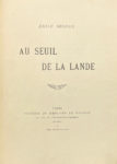 1902 ; plaquette in-8 brochée, tenue par un cordon de soie noire, chemise à dos de maroquin noir et étui (Patrice Goy).Édition originale de toute rareté du premier des deux recueils publiés par Émile Despax, considéré par Anna de Noailles comme le fils de Virgile. Sa poésie « a une tendresse et une mélancolie exquises », selon Talvart et Place. Il fut tué à l’ennemi à l’âge de 33 ans. Couverture illustrée en couleurs par Georges Berbès.