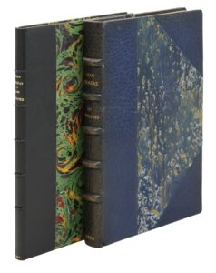 Presses de Lutèce, [Léon Vanier], 1884 ; in-12, demi-chagrin vert sombre à coins, tête dorée, couverture. Édition originale du premier recueil de Moréas, hors commerce. Tirage à 125 exemplaires numérotés et signés. Certains portent une étiquette de Léon Vanier sur la couverture.