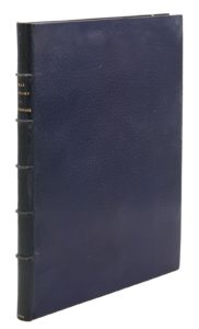 Bruxelles, P. Lacomblez, 1893 ; grand in-8 carré, maroquin janséniste bleu marine, dos à nerfs, doublures de maroquin rouge, gardes de soie rouge, tranches dorées sur témoins, couverture illustrée tirée sur soie, étui (Huser – Ex-libris Maurice Bock).Édition originale tirée à 203 exemplaires. Bois gravé sur la couverture en soie, par Henry van de Velde.