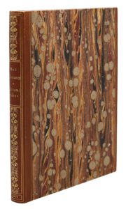 Bruxelles, P. Lacomblez, [1898] ; in-8, broché, étui boîte à dos et bordures de maroquin havane, motifs dorés en long du dos avec pastilles de maroquin vert mosaïquées, couverture illustrée (Devauchelle).Édition originale tirée à 256 exemplaires. Ornementations à la couverture par Henry Van de Velde et six bois hors texte. L’auteur mit trois ans à préparer textes et illustrations.