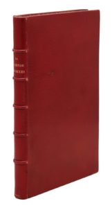 Bruxelles, l’auteur, 1882 (achevé d’imprimer du 15 avril 1883) ; in-8 de 147 pp., [1] f., 1 f. bl., maroquin janséniste rouge, dos à nerfs, large dentelle intérieure dorée, tranches dorées sur témoins, couverture et dos (Noulhac).Édition originale. « Ce livre est l’épopée du bas-ventre » (Préface). Héritier à la fois des romantiques et des Parnassiens, l’auteur regrette que ses prédécesseurs, en particulier Victor Hugo, n’aient pas brossé l’homme dans ses pulsions naturelles. Il maintient que le sexe est le seul chapitre de l’évolution échappant au progrès, sa science ayant été immédiatement comprise dans toutes des perfections et dans toutes ses variations.