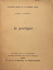 3 vol. in-12 brochés, chemises à dos de chagrin brique, étuis. THARIEUX Gabriel. Le Portique. Paris, 1909. Un des 12 exemplaires sur Whatman.