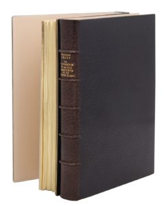 Paris, Cahier de la Quinzaine, novembre 1912 - mai 1913 ; 2 vol. in-12, maroquin janséniste bleu nuit, dos à nerfs, doublures bord à bord et gardes de box sable, tranches dorées sur témoins, couvertures, étuis (P.L. Martin).Éditions originales. La Tapisserie de Notre-Dame contient la Présentation de la Beauce à Notre Dame de Chartres.