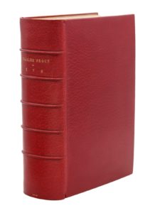 Paris, Cahier de la Quinzaine, décembre 1913 ; fort volume in-12, maroquin janséniste vermillon, dos à nerfs, doublures de maroquin vert, gardes de soie rouge à reflets verts, tranches dorées sur témoins, couverture, étui (Huser).Édition originale.
