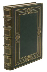 Paris, Eugène Rey, 1914 ; grand in-12 carré, maroquin vert anglais, filets dorés s’entrecroisant sur les plats, dos à nerfs orné de filets, filets intérieurs dorés, tranches dorées sur témoins, couverture (Ch. De Samblanx, 1919).Édition originale. Portrait par Steinlen gravé à l’eau-forte.