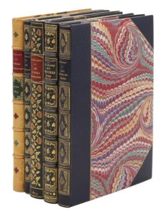Sonnets humouristiques. Nouvelle édition considérablement augmentée... Lyon, Scheuring, 1859 ; in-8, demi-maroquin citron à coins, filet doré, dos à nerfs orné de pièces mosaïquées quadrilobées rouges et vertes, motifs dorés au pointillés, pièces rouges et vertes, tête dorée (Capé). Édition très augmentée, avec une préface par Jules Janin. Elle est très bien imprimée en caractère augustaux par Louis Perrin. Portrait frontispice et vignettes sur bois dans le texte. Ravissante reliure. – Ex-libris du Dr Laloy et d’Albert Natural (Bibliothèque littéraire Albert-Louis Natural, 2009, n° 317).