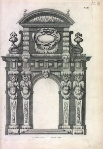 FRANCINI (Alessandro). [Livre d'architecture contenant plusieurs portiques et différentes inventions sur les cinq ordres de colonnes]. Paris, Melchior Tavernier, 1631. In-folio, bradel veau blond avec coins, dos lisse, pièce de titre en long...