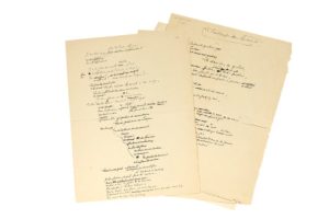 JAMMES Francis. (1868-1938). POÈME autographe, Le Printemps sous la neige, [novembre 1935] ; 4 pages et quart in-4 (fentes et déchirures). Manuscrit de premier jet et de travail d'un poème qui semble inédit (nous ne l'avons pas retrouvé dans l'OEuvre poétique complète). Un autre titre figure sur la première page : La chanson du grillon ; le poème semble devoir comporter quatre parties (2 feuillets portent les chiffres III et IV). Le manuscrit est abondamment raturé et corrigé, et présente plusieurs versions successives. «Je suis grillon de ce terrier où ploie L'herbe au tissu plus fin que de la soie»...