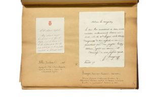 ALBUM D'AUTOGRAPHES. Environ 90 lettres, la plupart L.A.S., montées dans un fort album in-fol., demi-maroquin grenat à coins. François Arago, S. Arnould-Plessy, Émile Augier, général d'Aurelle de Paladines, A. Balard, P.J. Barbier, général Bedeau, V. Bellini, P.J. de Béranger, J.E. Berard, J.B. Biot, Alex. Bixio, G. Bizet, FA. Boieldieu, V. de Bonald, P.F. Boullay, J.B. Boussingault, P.S. de Brazza, V. de Broglie, P.J. Cambon, A.P. de Candolle, maréchal Canrobert, Ph. Chasles, Michel Chevalier, L. de Cormenin, Ad. Crémieux, Cuvillier-Fleury, F. David, G. Donizetti, G. Doumergue, Dubois d'Amiens, Ch. Duveyrier, A. de Falloux, L. Figuier, F. Foch, L. Foucault, H. Gouraud, J. Guérin, F. Guizot, F. Guyon, F. Halévy, St. Heller, J. Janin, A. Jubinal, P. Koenig, L. Kreutzer, A. de Lamartine, La Rochefoucauld-Liancourt, F. Lecourtier, E. Legouvé, Levassor, Emma Livry, J. Lordat, H. Lyautey, P. Loti, Marie-Amélie, Marie- Christine, J.F. Marmontel, E. Mellinet, G. Meyerbeer, F. Mistral, M. Molé, Mortier, D.J. Mercier, A. de Mun, G. Nadaud, Aug. Nélaton, D. Nisard, A. Paillet, L.P. comte de Paris, chancelier Pasquier, Pons de l'Hérault, F. Ponsard, H. de Quélen, L. Reybaud, A.R. Roussin, Aug. de Saint-Hilaire, Saint-Marc Girardin, Saint-René Taillandier, N.A. de Salvandy, A.P. Séguier, Eug. Scribe, A. Tastu, A. Velpeau, P. Viardot, A. Villemain, G. Vimeux, etc.