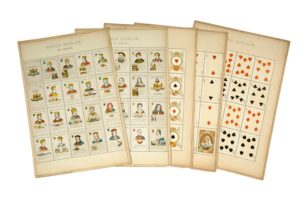 ENSEMBLE DE CARTES À JOUER. - Jeu complet français de 40 cartes publié en Angleterre sous le nom : «Les cartes royales : prospectus» (1880). - Jeu Anglais de 52 cartes historiques dites «Victorian», jeu de luxe dde Goodall & Son à Londres (fin XIXe siècle).