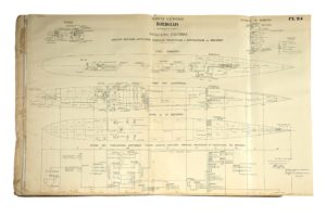 [MARINE]. [MILITARIA]. BORDELAIS. Torpilleur de 1495 Tx. Plans conformes à l'exécution. Atlas de la coque. [Bordeaux], Société des Forges et Chantiers de la Gironde, 1927. In-plano (74x52 cm.), cartonnage éditeur, dos toilé, montage sur onglets (cart. usé et défraîchi, mouillures claires dans les marges de pied des pl., 1 pl. incomplète, 4 pl. en déficit, en l'état). Très rare recueil de plans de construction de ce torpilleur, com­mandé par la Marine nationale selon les marchés passés avec le chantier naval les 27 janvier 1926 et 23 mars 1927. Il se compose de 42 plans imprimés, la plupart dépliant. Il manque ici les pl. n°1, 10, 18 et 23, le n° 16 est fragmentaire.