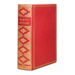 VECELLIO (Cesare). Habiti antichi, overo Raccolta di figure delineate dal gran Titiano e da Casare Vecellio suo fratello. Venise, Combi & La Noû, 1664. In-8, [7] f., 415 p., fig., veau brun moucheté époque, dos à nerfs f leuronné, pièce de titre rouge, roulette dorée aux coupes, tranches mouchetées, emboîtage maroquin rouge en forme de livre [V. Fonlupt], restaurations soignées, un coin du 3e f. restauré. Troisième édition de ce célèbre ouvrage qui parut pour la pre­mière fois en 1590. Elle est illustrée de 415 figures gravées sur bois à pleine page, qui reproduisent celles de l'édition de 1598. Exemplaire d'exception, dont toutes les illustrations ont été an­ciennement coloriées avec une très grande application, et qui a été ainsi relié à l'époque. (Colas 2978).
